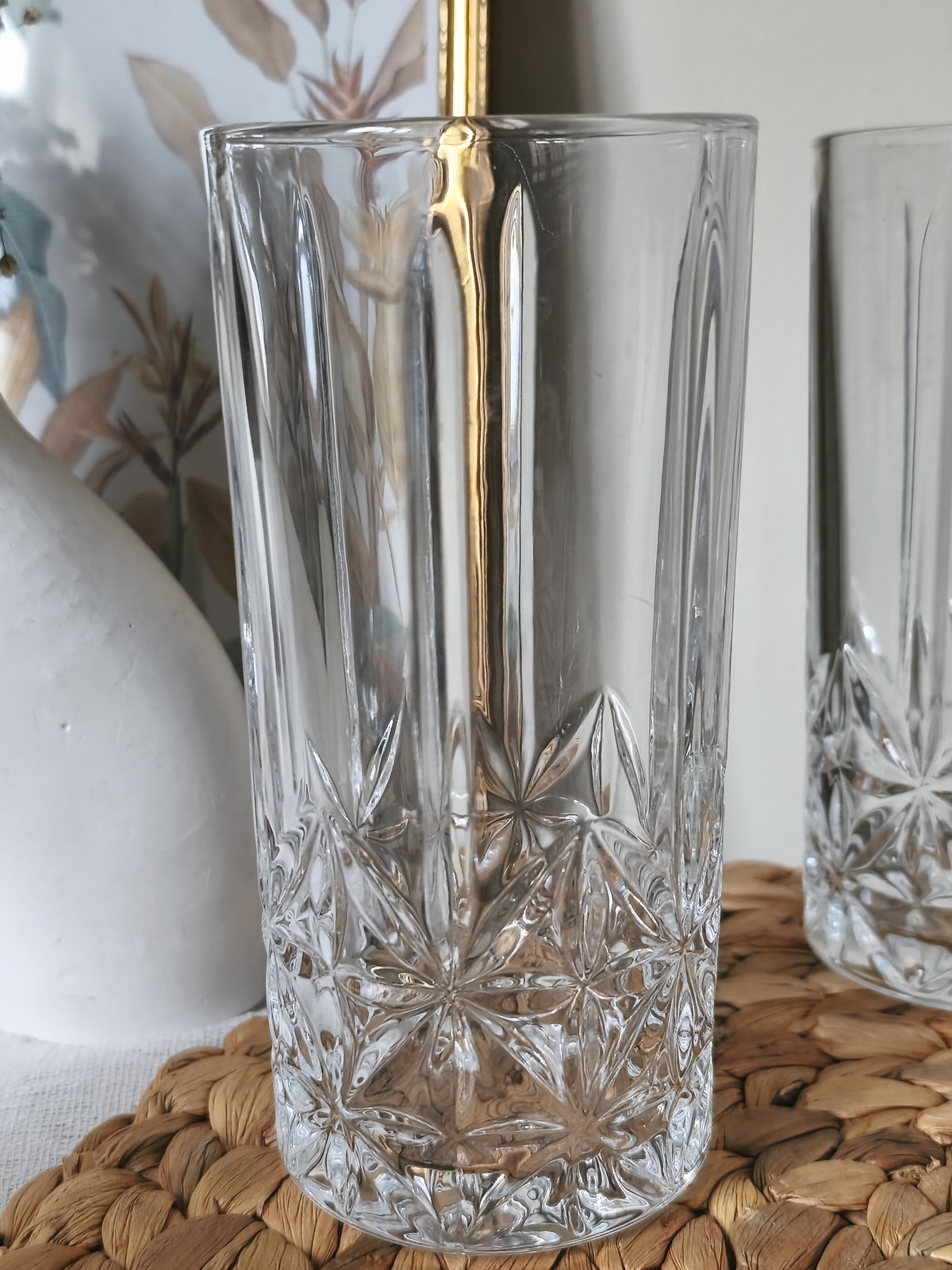 Set de 6 vasos de vidrio labrado trago largo . Son de vidrio grueso y con un atractivo diseño de diamante en la parte inferior . Dale un toque novedoso y original a tu mesa o terraza con este lindo Set de vasos. También puede ser un perfecto regalo.