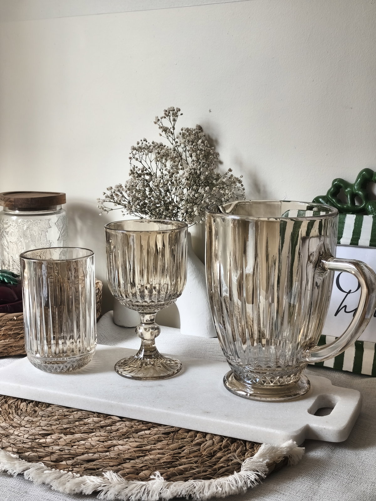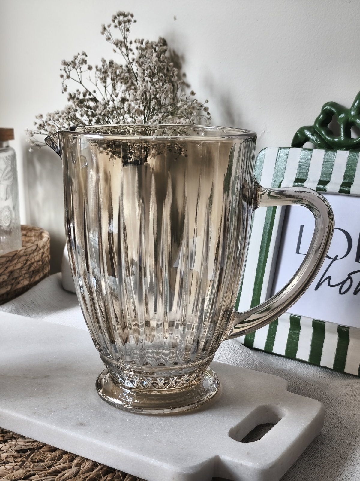 Las jarras mas lindas! Son de vidrio grueso y con un precioso diseño que lo hacen muy atractivo y versátil. Combínalo con los vasos de vidrio para tu mesa o terraza. También puede ser un práctico regalo.