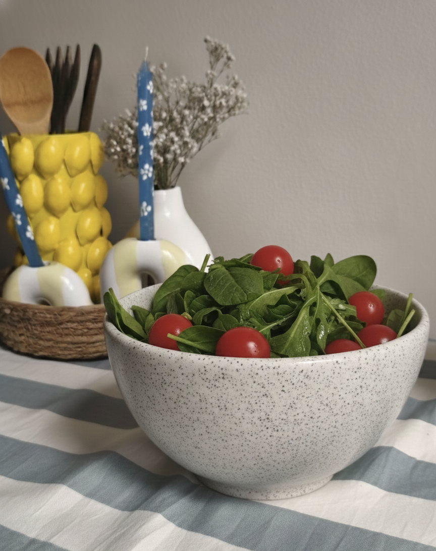 Dale un toque especial a tus comidas con nuestra ensaladera de cerámica. Su forma simple la hace ideal para servir distintos tipos de ensaladas, frutas o postres. Es de color natural y combina fácilmente con cualquier estilo de vajilla, haciéndola perfecta para el uso diario o para ocasiones especiales.