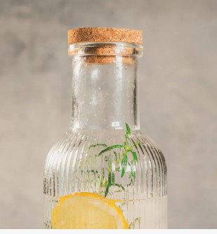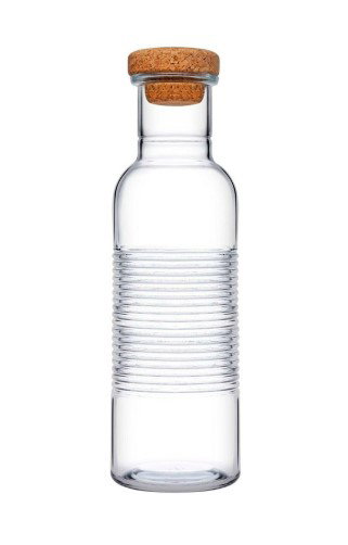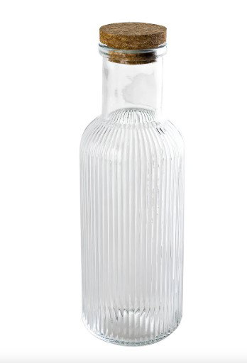 Botella de vidrio grueso labrado con tapa de corcho de 1 litro de capacidad (27.5 cm de altura y 8.5 cm de diámetro).