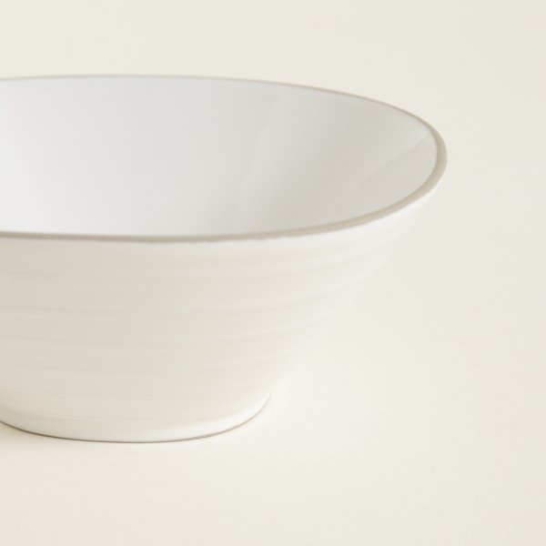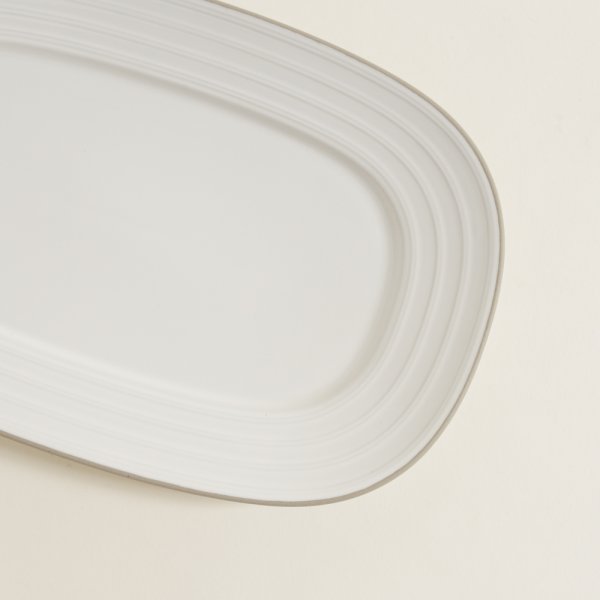 Dale un toque especial a tu mesa con este Set de cerámica Oval en color blanco con bordes en natural y textura de líneas .El bowl es perfecto para servir ensaladas, como frutero, centro de mesa y la bandeja lista para picadas, sushi, budines o lo que quieras. Es un set versátil por lo que se puede adaptar fácilmente a cualquier vajilla. Incluye: